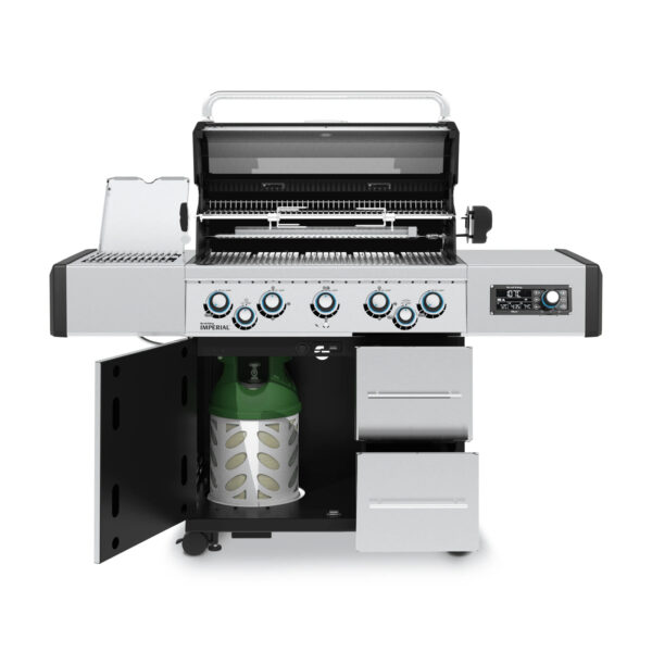 Broil King Imperial QS 590 IR — это газовый гриль, который станет идеальным выбором для любителей кулинарии, стремящихся к высоким результатам и удобству в использовании. Гриль предлагает общую площадь для приготовления пищи 5645 см², включая решетку для подогрева. Он оснащен решетками Flav-R-Cast из нержавеющей стали, системой Flav-R-Wave, 5 горелками Dual-Tube, боковой горелкой, горелкой для вертела, комплектом для вертела, боковыми полками из нержавеющей стали, подсвечиваемыми ручками управления и полностью закрытым шкафом с выдвижными ящиками. Гриль оснащен цифровым контроллером для легкой регулировки температуры и имеет функцию удаленного управления.
