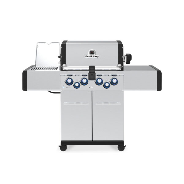 Broil King Regal S 490 IR — это газовый гриль, который станет идеальным выбором для любителей кулинарии, стремящихся к высоким результатам и удобству в использовании. Гриль предлагает общую площадь для приготовления пищи 4484 см², включая решетку для подогрева. Он оснащен прочными чугунными решетками для приготовления пищи Flav-R-Cast с матовой эмалью, системой Flav-R-Wave, 4 горелками Dual-Tube, боковой горелкой, горелкой для вертела, комплектом для вертела, боковыми полками из нержавеющей стали, подсвечиваемыми ручками управления и полностью закрытым шкафом.