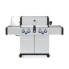 Элегантный дизайн: Гриль полностью изготовлен из нержавеющей стали, включая крышку гриля с торцевыми заглушками из литого алюминия, ручку крышки, панель управления, боковые полки и шкаф-тележку с дверцами, который обеспечивает безопасное хранение газового баллона. В комплект входит съемная подсветка, которая крепится на ручку гриля.