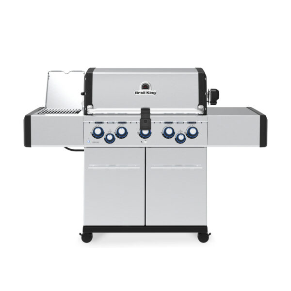 Broil King Regal S 590 IR — это газовый гриль, который станет идеальным выбором для любителей кулинарии, стремящихся к высоким результатам и удобству в использовании. Гриль предлагает общую площадь для приготовления пищи 5645 см², включая решетку для подогрева. Он оснащен прочными чугунными решетками для приготовления пищи Flav-R-Cast с матовой эмалью, системой Flav-R-Wave, 5 горелками Dual-Tube, боковой горелкой, горелкой для вертела, комплектом для вертела, боковыми полками из нержавеющей стали, подсвечиваемыми ручками управления и полностью закрытым шкафом.